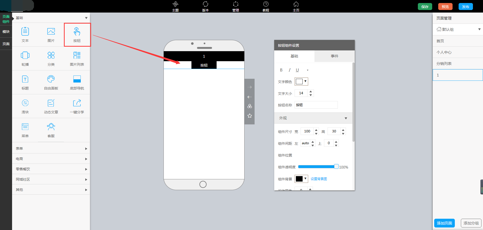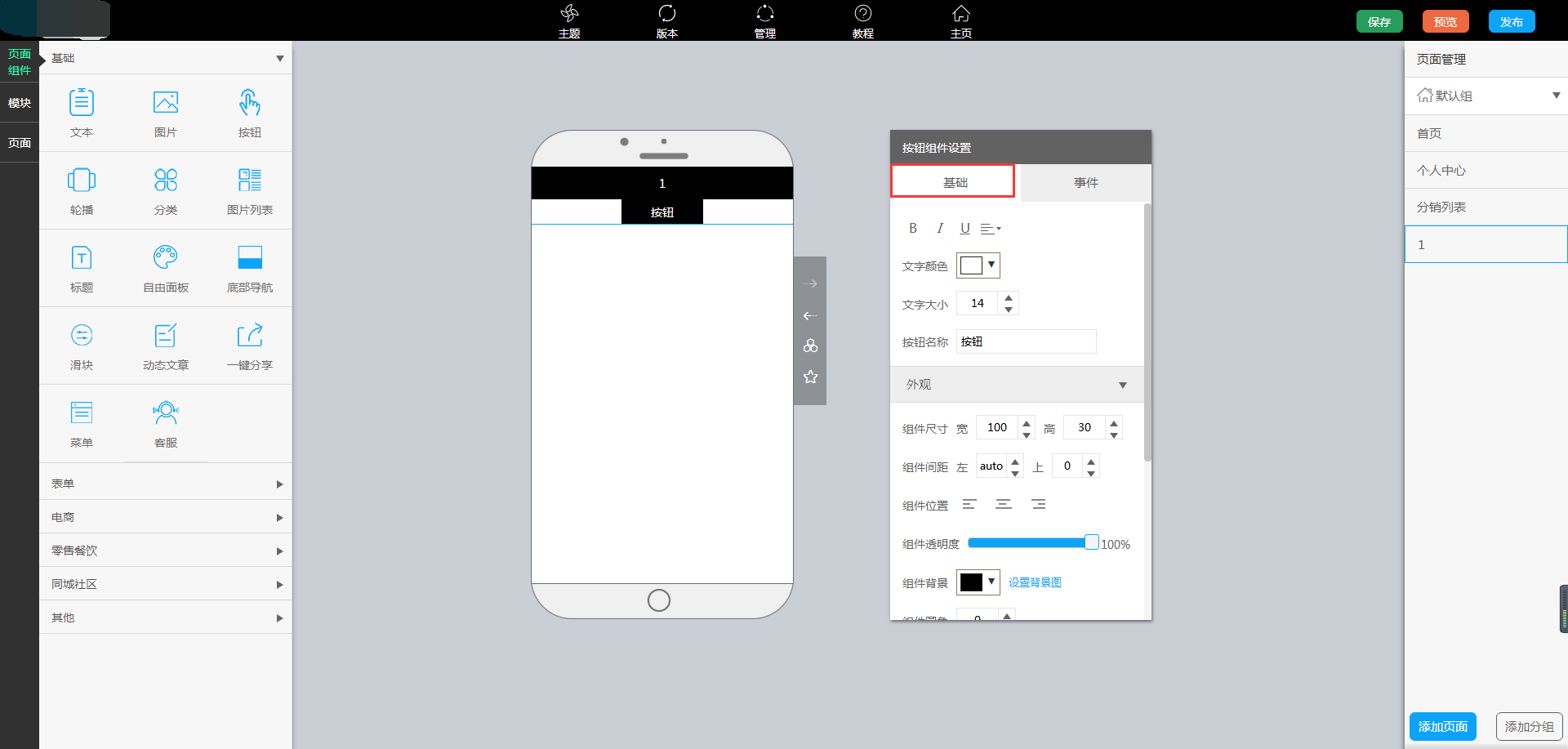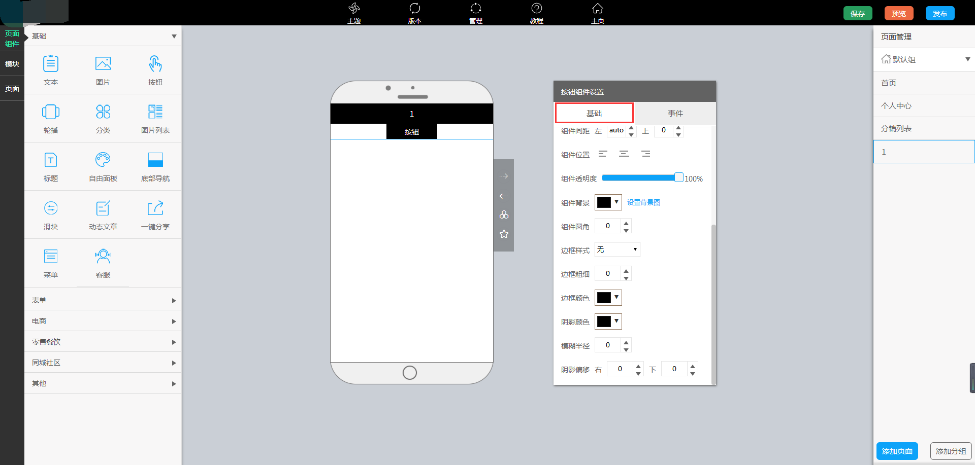 组件间距(左、上):设置本组件与其他组件之间的间距。